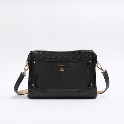 Black RI monogram cross body bag River Island
